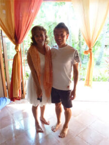 この写真は昔、世界で最も厳しいヨガトレーニングと言われていたバリ島・ウブド40日間(300時間)TTCでの、とてもお茶目で素敵なイラン人女性ヨガ講師Rさんとのワンショット。
